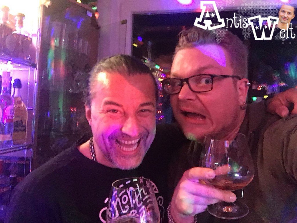Derjan rief mich an und fragte, ob ich zu Hause bin. Er wolle mir seine neue CD vorbei bringen. Ich sagte JA! Jan sagte ich habe Schnaps und Schlafsachen dabei... Es war ein sehr lustiges und sehr, sehr feucht fröhliches Vergnügen! Mein Wecker hat am nächsten Morgen von 7 bis 13 Uhr im 5min Takt geklingelt, bis Jan mich geweckt hat.