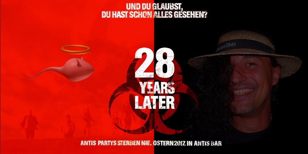 28 Years later... Der Titel sagt schon alles. Anti wurde wieder 28 und um diesen weltbewegenden Tag vor 28 Jahren zu feiern, wurde Antis-Bar in eine Party Location verwandelt. DJ Desse hat wieder für geile Musik gesorgt, der Captain für die ausgelassene Stimmung und meine Freunde für nen tollen Abend! Ich habe mich sehr über alle gefreut, die da waren, vor allem über einige, mit denen ich nicht gerechnet habe. Der Abend war ein voller Erfolg und ich bin bereit für das nächsten 28ste Lebensjahr... :-)